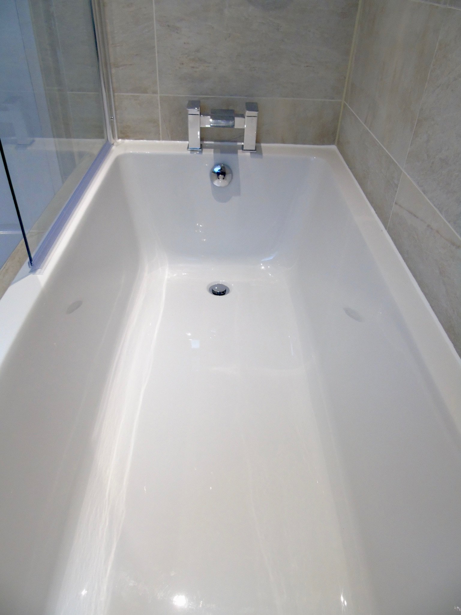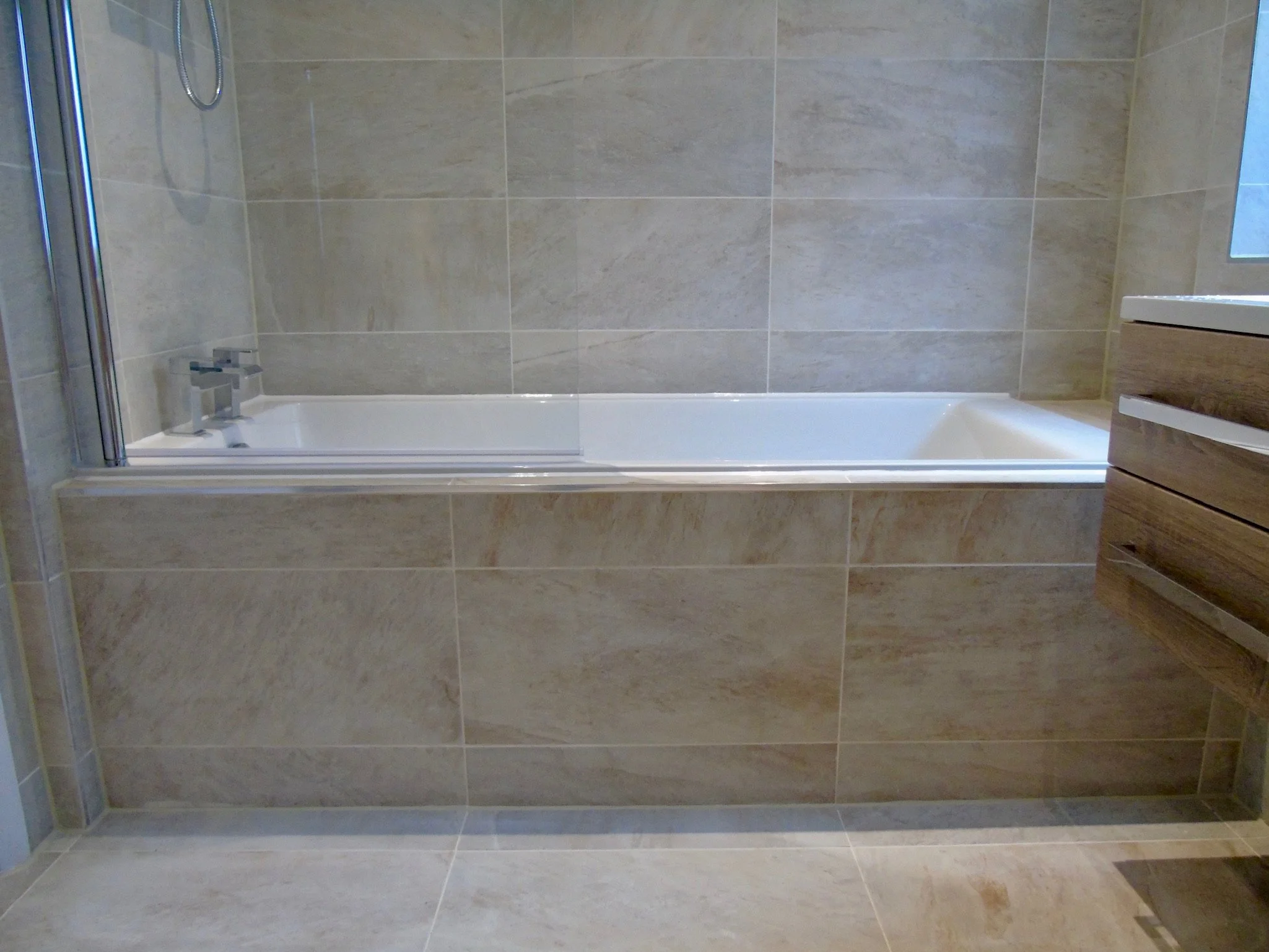 Walk in shower, double ended bath and television