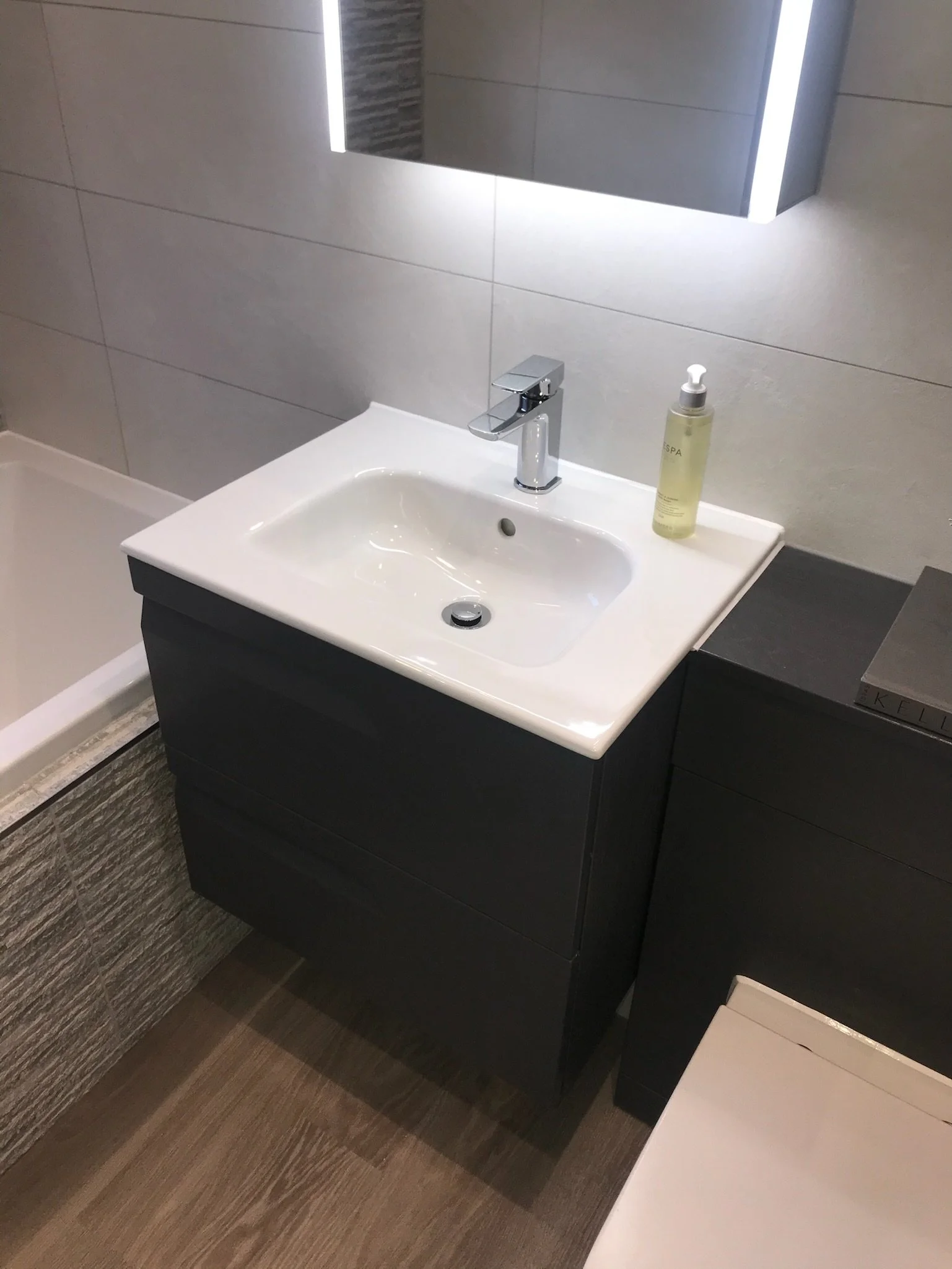 Low profile shower tray, Wall hung Vanity