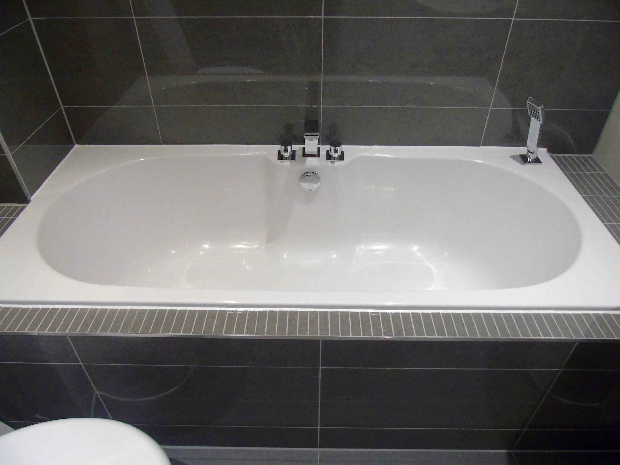 Low profile shower Tray with bespoke Glass screen, freestanding Bath and taps