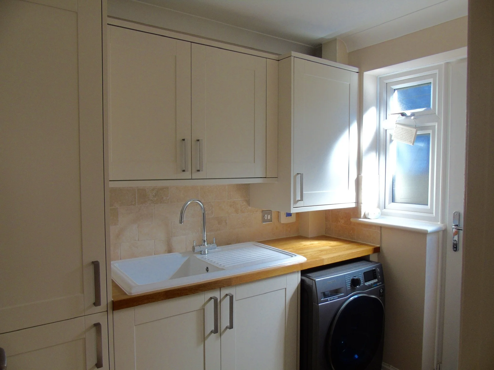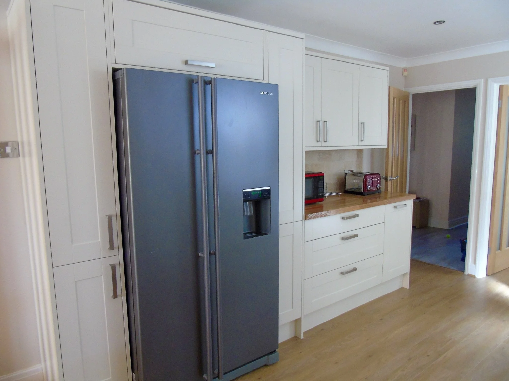 cream shaker with solid oak worktops